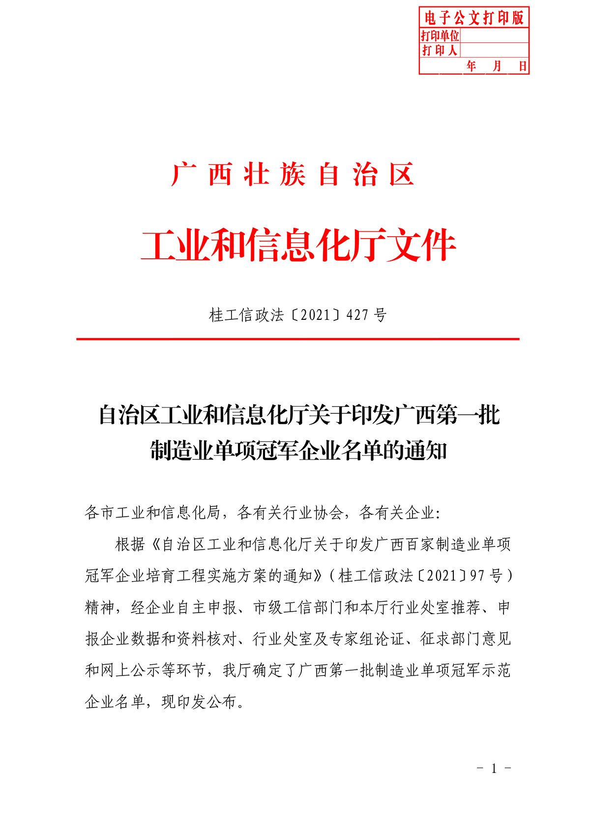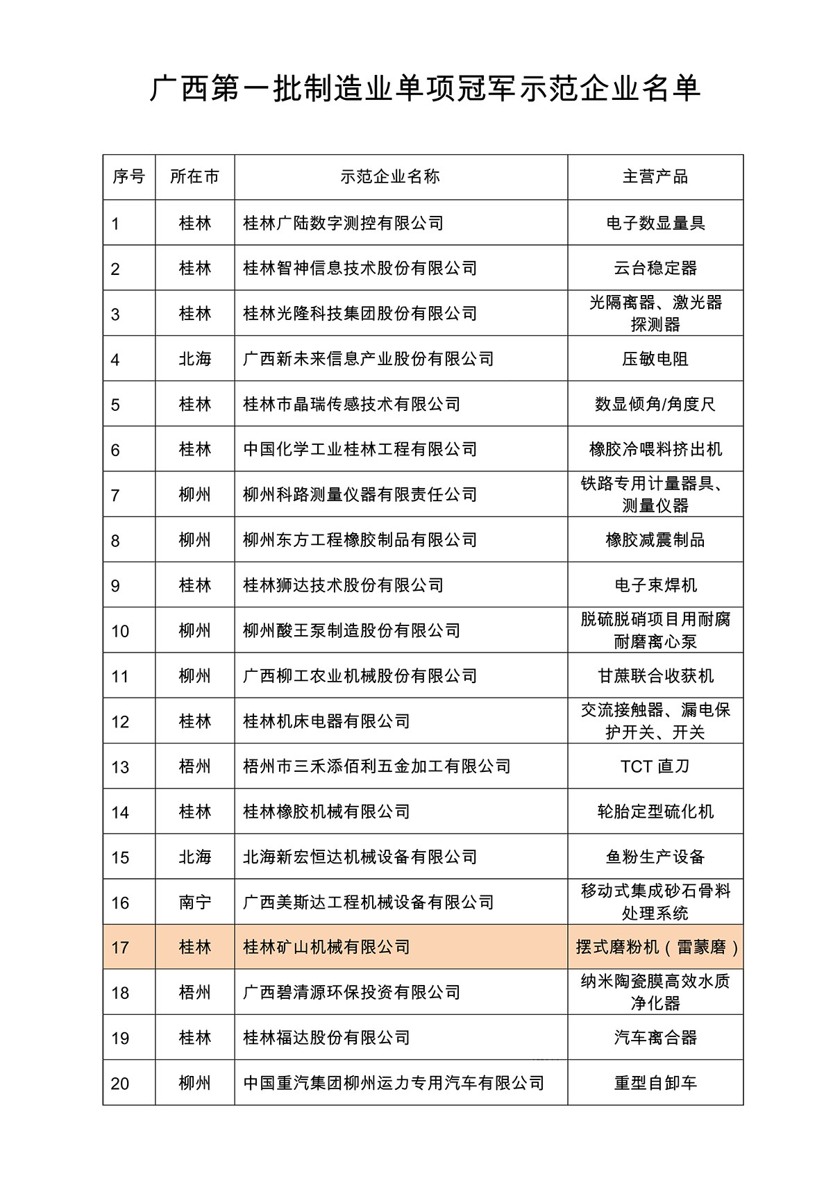 日前,自治區工業和信息化廳關于印發廣西第一批制造業單項冠軍企業名單的通知,確定了桂林礦機等42家企業成功入選廣西第一批制造業單項冠軍示范企業。