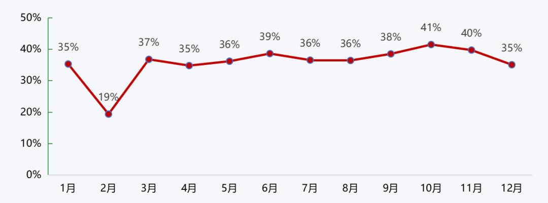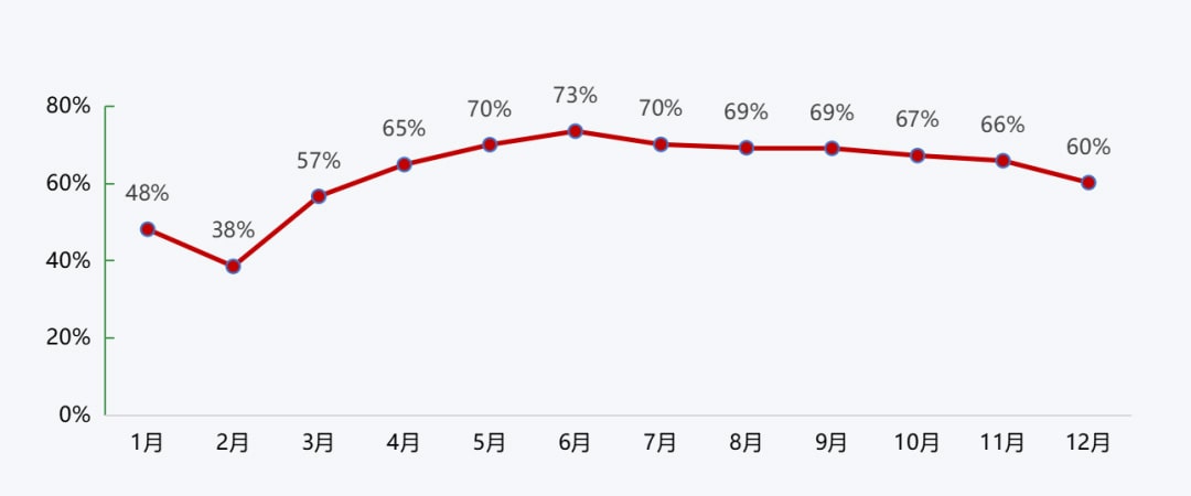2022年砂石企業開機率和產能利用率走勢較為一致,均在年初、年尾出現回落,年中保持較高水平。一季度,受春節假期、雨雪天氣等影響,開機率、產能利用率均較低,2月更是分別降至38%、19%;二季度疫情逐漸緩解,三季度工程旺季到來,二、三季度開機率、產能利用率均保持較高水平,6月更是達到了年度最高水平,分別升至73%、39%;進入四季度,受到雨雪天氣到來以及疫情的反復,雙重因素的影響導致開機率、產能利用率均出現回落,12月,分別降至60%、35%。