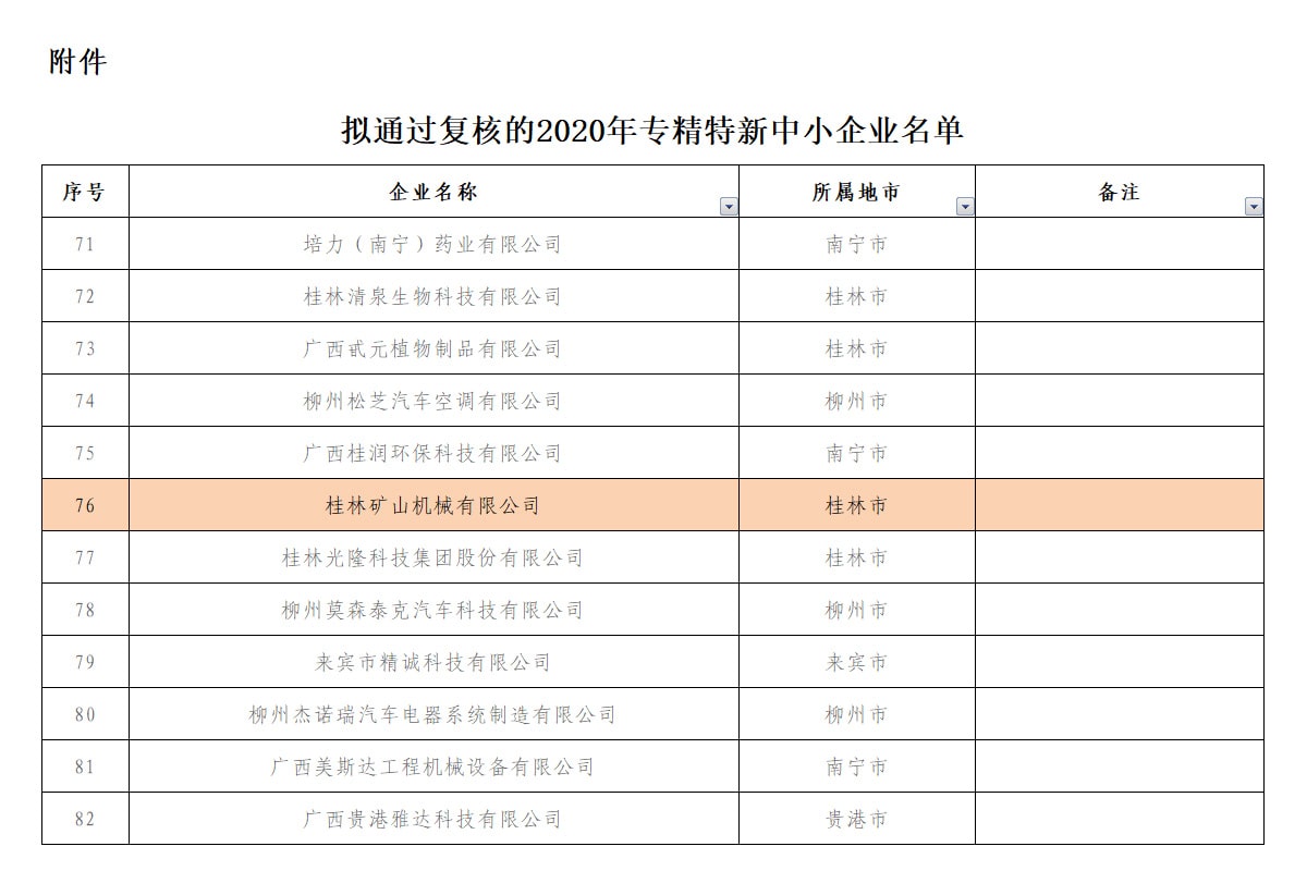 喜報!桂林礦機通過自治區(qū)工信廳2020年專精特新中小企業(yè)復(fù)核公示